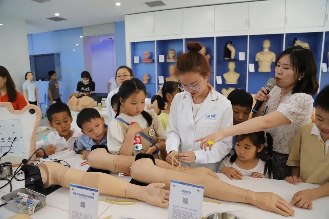 小朋友们集合参观天堰医学模拟中心,深入了解企业文化,探索医学奥秘